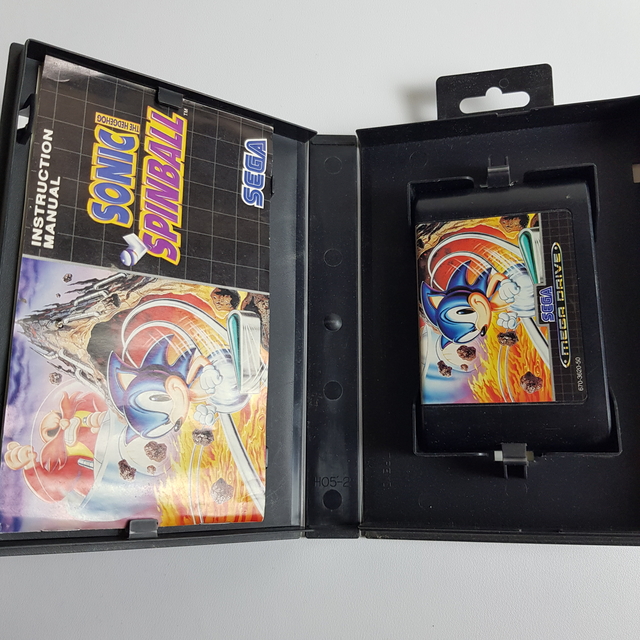 A képeken egy "Sonic Spinball" nevű videójáték látható a Sega Mega Drive konzolhoz. Ez a játék az 1990-es évek elején vált népszerűvé, és az ikonikus Sega-mascot, Sonic a sündisznó, a főszereplője. A "Sonic Spinball" egyedi azzal, hogy pinball (ütőgolyós játék) mechanikákat kombinál a hagyományos platformjáték elemekkel. A játékosok Sonic karakterét irányítva guríthatják különböző flipperasztalokon és gyűjthetik össze a gyűrűket, miközben megpróbálják elérni a pálya végét és legyőzni az ellenfeleket. A termék egy fizikai játékpatron, amelyet a Sega Mega Drive (Észak-Amerikában Sega Genesis néven ismert) konzolba kell helyezni a játék elindításához. A játék doboza és a használati utasítások is láthatók a képen, és ezek egykor fontos részeit képezték a videojátékok csomagolásának. Ezek gyakran tartalmaztak információkat a játékról, beleértve a történetet, a karakterleírásokat, a játékmenet-utasításokat és más hasznos információkat a játékosok számára. Az ilyen típusú játékok mára nosztalgikus értékkel bírnak a videójáték-történelemben, gyakran gyűjtők és retro játék rajongók keresik őket. [7.1]