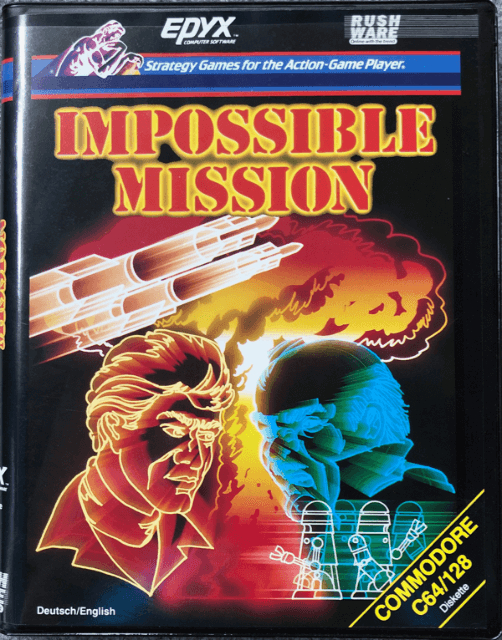 Ez a "Impossible Mission" című videojáték borítója, amely az Epyx által készült és a Commodore 64/128 platformra jelent meg. ### Termék részletei: - **Cím**: Impossible Mission - **Kiadó**: Epyx - **Platform**: Commodore 64/128 - **Játéktípus**: Akció-kaland játék ### Játék leírása: Az "Impossible Mission" egy klasszikus platformer és rejtvényfejtő játék, amelyben a játékosnak egy gonosz tudós, Elvin Atombender betörését kell megakadályoznia. A játékos szerepe egy titkos ügynök, akinek az a feladata, hogy behatoljon a tudós bázisára, kikerülje a csapdákat és robotokat, és összegyűjtse a szükséges információkat a küldetés sikeres végrehajtásához. A borító dizájnja tipikus a korabeli videojátékok esetében, élénk színekkel és dinamikus grafikával, amelyek a játék izgalmát és akcióját tükrözik. [1.7]