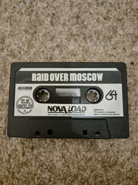 A képeken látható termék egy klasszikus számítógépes videojáték, amely a Commodore 64 platform számára készült. A cím "Raid Over Moscow", és az amerikai U.S. Gold kiadó gondozásában jelent meg. A játék egyedi, fekete kazettán található, melynek címkéjén a játék neve és a "Nova Load" technológia logója is szerepel. Ezen kívül a kazettán látható még egy figyelmeztetés, miszerint a digitális másolás sérti a szerzői jogokat. A kazetta doboza szintén fekete, és tartalmazza a játék eredeti borítóját. A borítóképen egy drámai jelenet látható, amely egy sugárzási pusztítást ábrázol, valószínűleg egy szovjet város, talán éppen Moszkva központjában. A borítón szerepel a játék címe, valamint a "Gripping arcade action" és "Multiple scrolling screens" feliratok, amelyek azt sugallják, hogy a játék intenzív és izgalmas játékmenetet kínál, több görgethető képernyővel. A játék története és célja szerint a játékos egy vadászgép-pilóta szerepét ölti magára, akinek feladata egy virtuális öngyilkos küldetés végrehajtása, hogy megsemmisítse a Szovjetunió nukleáris indítóállásait és megakadályozza a támadást. A dobozra ragasztott cetlin a játék ára, vagy talán egy másik azonosító információ látható. Az összkép korabeli, retro hangulatot áraszt, visszaidézve a 1980-as évek videójáték-kultúráját. [2.9]