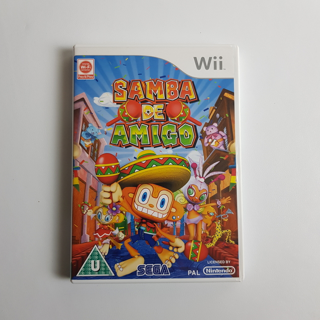A "Samba de Amigo" egy izgalmas és szórakoztató videojáték, amelyet a Sega fejlesztett és a Nintendo Wii platformra adott ki. A játék vibráló, színes borítója azonnal magával ragadja a figyelmet, a cím és a karakterek jellegzetes grafikai stílusa pedig játékos hangulatot áraszt. A borítón egy boldog figura látható, aki tradicionális mexikói szertartási öltözékben van, körülvéve több élénk színű és bohókás karakterrel. A játék hátoldalán található leírás különlegesen kiemeli a játék élményét, amely a maraca-zene ütemére épülő táncos kihívásokat kínál. A "Maraca-Shaking Fiesta of Fun" szlogen egyértelműen kifejezi a játék vidám, bulis hangulatát, amely egyszerre nyújt kihívást és szórakozást akár egy, akár több játékos számára. A hátoldalon látható képernyőképek arról tanúskodnak, hogy a játék színes és dinamikus grafikával rendelkezik, valamint rávilágítanak a különböző játékmódokra és lehetőségekre, amelyeket a játékosok felfedezhetnek. A tok belsejében megtalálható a játék lemeze, amely élénksárga színben pompázik, és a "Samba de Amigo" nevet viseli. A részletesen kidolgozott grafika a lemezen is tovább folytatódik, megőrizve a játék vibráló atmoszféráját. Az instrukciós kézikönyv is benne rejlik a tokban, amely segíti a játékosokat a szabályok és vezérlők megismerésében, ezáltal gördülékenyebbé téve a játék kezdését és fokozását. A "Samba de Amigo" egy izgalmas ritmusjáték, amely biztosan feldobja a játékosok hangulatát és garantáltan mosolyt csal mindenki arcára, miközben a maracák ütemére ringatóznak. [3.6]