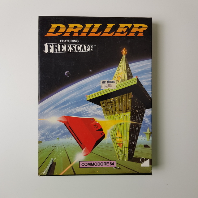 A "Driller," amely a Freescape rendszerrel készült, a Commodore 64 jól ismert videojátéka. A játék csomagolása egy futurisztikus, színes világba kalauzolja a játékosokat, amelyet egy izgalmas sci-fi környezet övez. A borítón egy űrjelenet látható, amely dominánsan egy éles szögben álló, geometrikus formákból álló struktúrát és egy vörös, csúcsos járművet ábrázol. Az előtérben középpontba helyezett építmény, amely mintha egy futurisztikus torony lenne, kiemelkedik a háttérben látható, gyűrűs bolygóval. A kompozíció magával ragadó, az élénk színek és éles vonalak a kaland és felfedezés izgalmát sugallják, amelyeket a játék kínál. A borítón az "Driller" felirat karakteres, nagy méretű betűkkel van szedve, míg az alatta található "Featuring Freescape" felirat egyfajta garanciát nyújt a játékos számára a minőségi, immerszív élményről. A doboz jobb alsó sarkában található a Commodore 64 embléma, jelezve, hogy a játék ezen a népszerű platformon fut. Az ár információja is feltüntetésre került a dobozon, amely hozzájárul a korabeli játékkiadók jellegzetes stílusához. Összességében a csomagolás izgalmakat és rejtélyeket ígér a jövőbeli játékosoknak, miközben az esztétikai kidolgozás a korszak retro hangulatát tükrözi. [2.6]