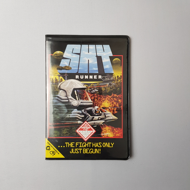 A "Sky Runner" egy izgalmas, retro számítógépes játék, amely kifejezetten C64-es rendszerre készült. A borító élénk színei és dinamikus képi világa azonnal felkelti a figyelmet. A borítón egy futurisztikus légimotor látható, amely egy izzó, lángoló táj felett süvít, jelezve a játék gyorsaságát és adrenalinnal teli élményét. A háttérben különböző űrhajók és futurisztikus épületek láthatók, amelyek tovább fokozzák a játék sci-fi hangulatát. Kiemelt helyen, figyelemfelkeltő felirat jelzi: „THE FIGHT HAS ONLY JUST BEGUN!” - vagyis a harc csak most kezdődött. Ez a mondat sejteti a játék hordozta kihívásokat és az előtted álló kalandokat. A borító bal alsó sarkában látható a C64 logó, amely biztosítja a kompatibilitást a Commodore 64 rendszerrel, és egy piros-fehér embléma található, amely a játék minőségére és a kidolgozott részletekre utal. A borító összhatása egyértelműen azt sugallja, hogy a Sky Runner egy lenyűgöző, klasszikus videojáték, amelyben a játékos egy hihetetlen utazásra indul a jövőbe, tele akcióval és stratégiai kihívásokkal. [2.3]