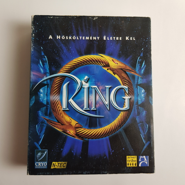 Ez a termék egy számítógépes játék, amelynek címe "Ring". A doboz elülső részén egy lenyűgöző, sötétkék háttér található, amelyen egy aranyszínű gyűrű uralkodik, közepén a játék címe díszeleg. A logók és a cím körül futurisztikus, misztikus elemek és szimbólumok láthatók. A játékot a Cryo Interactive fejlesztette, ahogy azt a bal alsó sarokban elhelyezett logó jelzi, míg az N-TEC és az Arxel Tribe is közreműködött a kiadásban. A cím felett magyar nyelven olvasható a felirat: "A hősköltemény életre kel", amely arra utal, hogy a játék egy epikus történetet mesél el a játékosok számára. A doboz hangulatot teremt, misztikus és hősies kalandokat ígér, amit a vizuális elemek és a színek tökéletesen tükröznek. A játék valószínűleg magával ragadó történetet és kihívásokkal teli küldetéseket kínál, amelyek a gyűrű köré vannak szőve. Az igényesen megtervezett borító és a marketing elemek alapján egy igazi kalandjáték remekmű kerül a játékosok kezébe. Az érdeklődők számára, akik szeretik a fantázián és kalandon alapuló számítógépes játékokat, ez a termék kiváló választás lehet. [2.3]