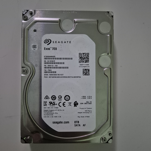 A képen látható Seagate Exos 7E8 merevlemez egy nagy kapacitású adattároló eszköz, amelyet kifejezetten vállalati felhasználásra terveztek. Ez az egység 8 terabájt (TB) tárhelyet kínál, így tökéletes választás nagymennyiségű adat tárolására. Az eszköz egy 3.5 hüvelykes formátumú SATA interfészt használ, amely biztosítja a széleskörű kompatibilitást különböző számítógépes rendszerekkel. Ezzel a merevlemezzel a Seagate a megbízhatóság és a magas teljesítmény iránti elkötelezettségét demonstrálja. Az Exos 7E8 tervezésekor különös figyelmet fordítottak az adatbiztonságra és a hosszú élettartamra, így ez az eszköz ideális választás mind a szerverek, mind a nagy adattárolási igényű vállalati környezetek számára. Az egész egységet robusztus fémház védi, ami növeli a tartósságát és ellenállóképességét. Fentiek mellett, a termék jelölései a compliance tanúsítványokról tanúskodnak, így az RoHS és más ipari szabványoknak is megfelel. A merevlemez működési hőmérsékletének, tápellátási igényeinek, valamint más műszaki adatainak részleteit a készülék címkéjén található QR-kód segítségével könnyedén el lehet érni. Ez a merevlemez nemcsak megbízható, hanem a modern adatkezelési igényeknek is teljes mértékben megfelel. [2.6]
