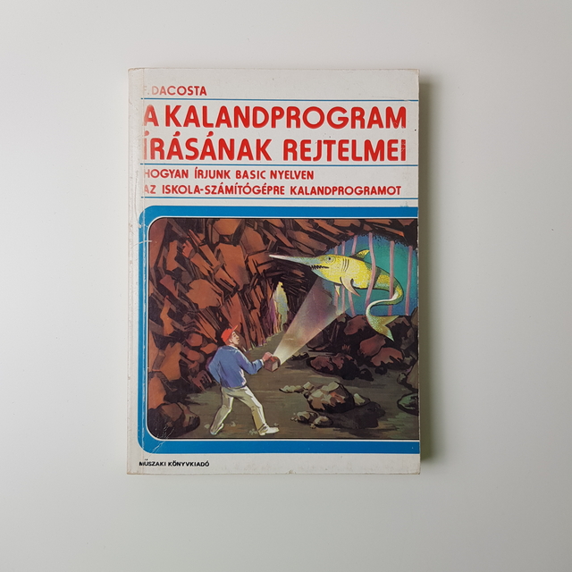 Ez a könyv, "A kalandprogram írásának rejtelmei" címet viseli, és E. Dacosta tollából származik. A borító retro stílusú, amely az 1980-as évek technológiai világát idézi. Az alcímek szerint a könyv a BASIC programnyelv használatán keresztül mutatja be, hogyan lehet iskolai számítógépekre kalandprogramokat írni. A borítón található illusztráció egy barlangászatra emlékeztető jelenetet ábrázol, ahol egy férfi zseblámpával világít egy hatalmas barlang falán, miközben egy sárkány vagy dinoszaurusz feje bukkan elő a homályból. Ezen kép révén a könyv sejtelmes és izgalmas hangulatot sugall, ami valószínűsíthetően a kalandprogramok világába való elmélyülést hivatott előrevetíteni. A szerző valószínűleg egy lépésről lépésre vezető útmutatást nyújt a programozók számára, akik saját kalandjaikat szeretnék létrehozni. A "Műszaki Könyvkiadó" kiadványa hiteles forrásnak tűnik azok számára, akik a '80-as évek számítógépes kalandprogramjaiban szeretnének elmerülni és saját történeteket alkotni. [1.4]