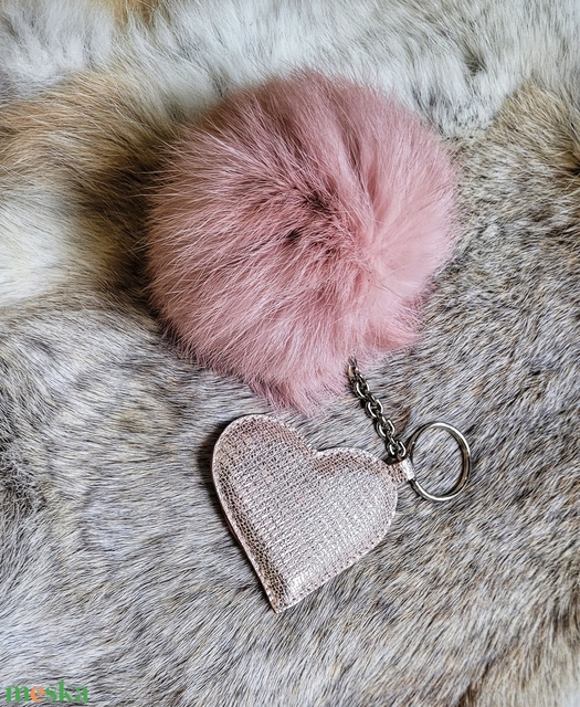 kw: kulcstartó, rózsaszín pom-pom, szív alakú medál, női kiegészítők