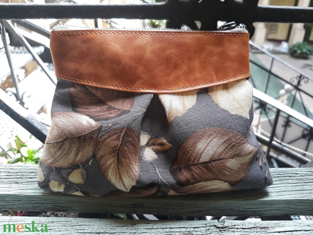 Ez a kézitáska egyedülálló eleganciát és természetességet áraszt. A dizájn központi eleme a barnás árnyalatú, virágmintás anyag, amely tökéletesen harmonizál a felső részt díszítő, meleg barna bőrbetéttel. A bőrből készült részlet szép kontrasztot ad, miközben a táska összképét letisztulttá és stílusossá teszi. A struktúrált, redőzött mintázat kialakítása modern és elegáns megjelenést kölcsönöz. Kialakítása lehetőséget nyújt mindennapi használatra, hiszen tágas belső terének köszönhetően praktikus, ugyanakkor a megfelelő mérete miatt nem túl nagy vagy nehézkes viselet. A természet inspirálta minták kiemelik viselőjének egyedi stílusérzékét, miközben a finom kidolgozás és az anyagok minősége garantálja a tartósságot. A táska ideális választás lehet különböző alkalmakra, legyen szó városi sétákról vagy informális találkozókról. Az oldalán található aprólékosan kidolgozott részletek, mint például a varrások, további kifinomultságot kölcsönöznek. Ennek a kézitáskának minden eleme a természetes szépséget és a kiváló minőségű kézműves munkát tükrözi. [1.5]
