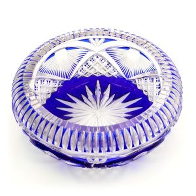 kw: kézműves tál, kristályüveg, kobalt kék, elegáns dekoráció, ajándék, csillagmotívum, geometrikus minta