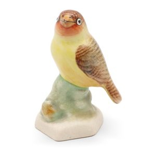 Ez a bájos madárszobor finoman kidolgozott kerámiából készült, és egy színes, részletes madarat ábrázol. A figura a természet szépségét örökíti meg, meleg, harmonikus színeivel. A madár sárga teste és barna szárnyai finoman illeszkednek a természetes színátmenetekkel, melyek élethűvé és esztétikussá teszik a tárgyat. Az aprólékos festés kiemeli a madár arcvonásait és tollazatának textúráját. A szobor egy egyszerű, időtlen, világos alapon nyugszik, amely stabilitást biztosít neki, és alkalmas különböző helyszínek díszítésére. Ideális választás lehet lakások, irodák vagy gyűjtők polcainak, asztalainak dekorálására, miközben természetközeli hangulatot varázsol környezetébe. A részletekkel teli kidolgozás és a gondos festés egyedi művészi értéket kölcsönöz a darabnak, amely különösen megkedveltetheti magát a természetszerető vásárlókkal és dekorációt keresőkkel egyaránt. [1.3]