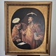 A képen látható festmény két középkori viseletbe öltözött férfit ábrázol. Az öltözékük mély, meleg árnyalatú barna-kék színű, amely eleganciát sugall. A bal oldali alak arcát pirosas szakáll díszíti, fején pedig egy fehér sapka van, amit részletgazdagon festettek meg, hogy kiemelje a karakter korát és bölcsességét. Tekintete közvetlenül a mellette álló társára irányul, aki ugyancsak középkori öltözetet visel, fején széles karimájú kalap található, ami árnyasára vonzza a figyelmet. A festmény hátterében egy sötét, homogén háttér helyezkedik el, ami segít a középpontba állítani a két alak interakcióját. A férfiak közötti asztalon különféle tárgyak fedezhetők fel: egy tekercs, amely a tudás vagy egy fontos üzenet szimbóluma lehet, és egy kis tál, benne valamilyen apró tárggyal vagy élelmiszerrel. Ez a részlet előkelőséget és gazdagságot idéz. A festmény arany kerete további nemességet kölcsönöz az egész műnek, kiemelve annak történelmi és művészi értékét. A festmény átfedéses alakjai és színvilága megragadja a néző tekintetét és elgondolkodtató történetet mesél egy régmúlt korszakról. [1.7]