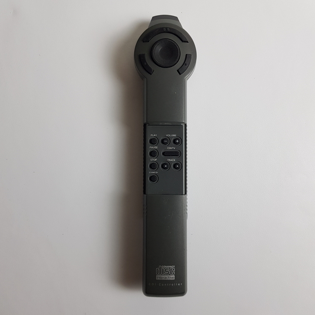 Ez a termék egy Philips CDI 210 típusú Compact Disc Interactive (CD-i) lejátszó, amely egy multimédiás lejátszó platform. A CD-i lejátszók az 1990-es évek elején jelentek meg a piacon, és olyan interaktív tartalmak lejátszására voltak alkalmasak, mint például edukációs szoftverek, enciklopédiák, valamint videojátékok. Az egyik képen látható távirányító valószínűleg a lejátszóhoz tartozik, és segítségével kényelmesen irányíthatjuk a lejátszást. A CD-i kísérlet volt a szórakoztató elektronika és az informatika ötvözésére, de a piac nem fogadta kitörő lelkesedéssel, főként a korlátozott játékkínálat és a magas ár miatt. Ennek ellenére, egyedi megoldásaival és az interaktivitás iránti törekvésével a Philips CD-i fontos szerepet játszott a multimédiás technológiák fejlődéstörténetében. [8.1]